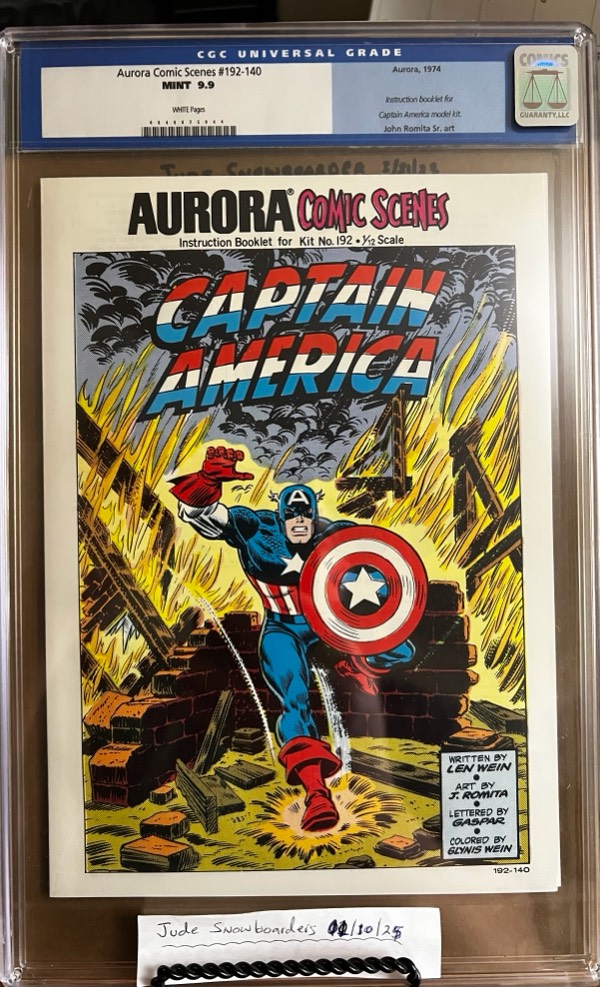 – Aurora Comic Scenes #192-140 9.9 CGC. Rare 9.9 1974 Romita Sr. comic book!! Key: John Romita cover and art: Captain America! $200