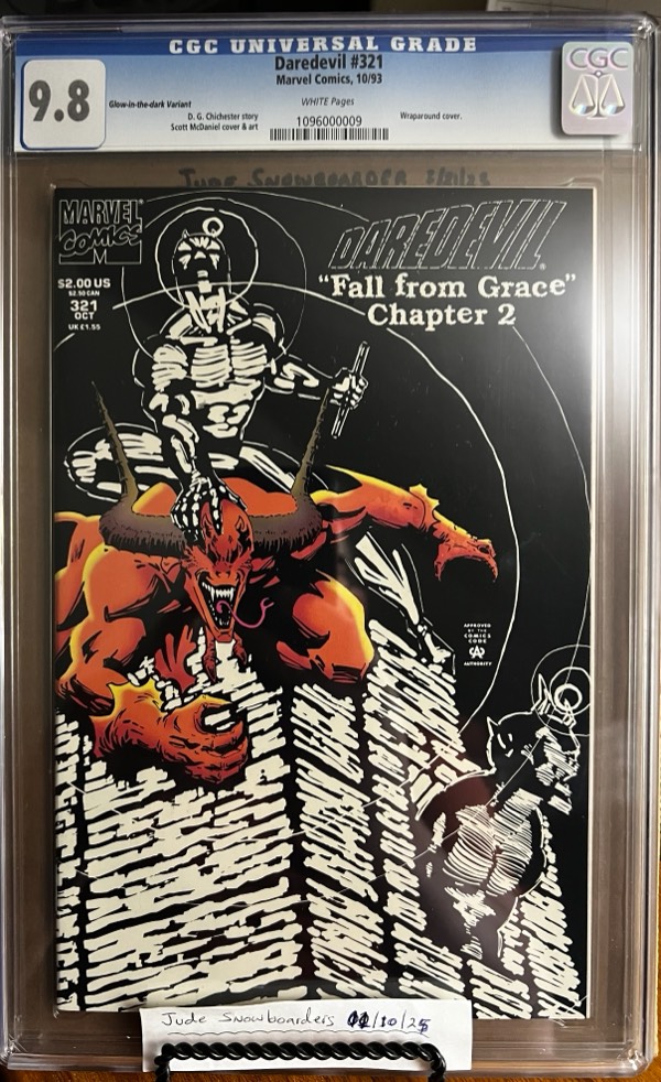 – Daredevil #321 9.8 CGC GLOW-IN-THE-DARK Variant! KEY: Debut of Daredevil’s black armor suit. $250