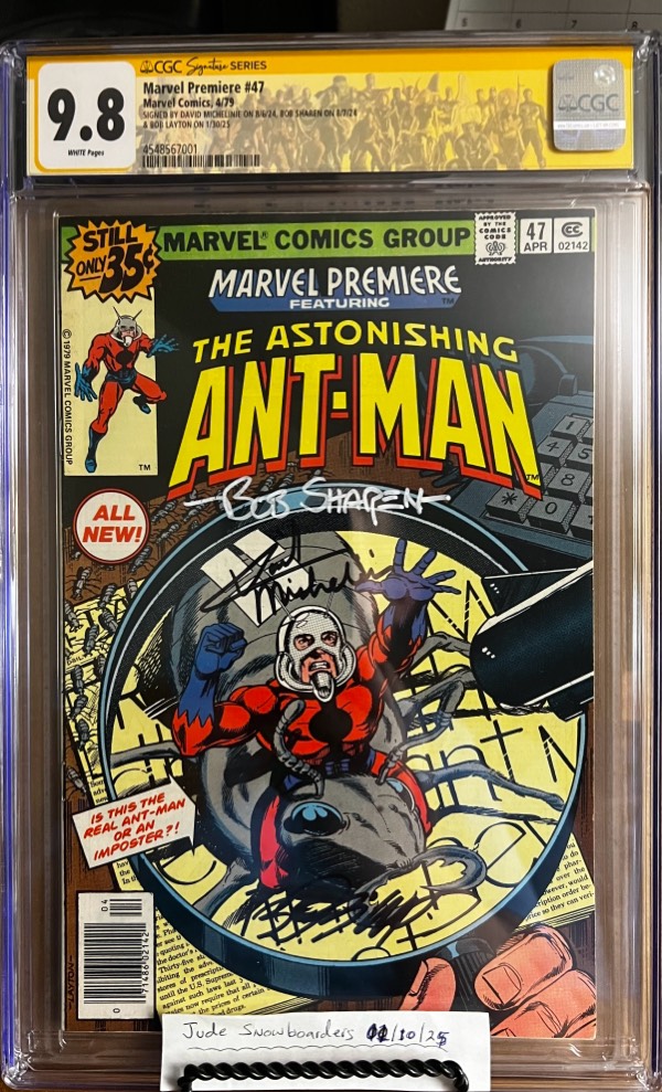 NEWSSTAND Signed by Bob Layton, David Michelinie & Bob Sharen! KEY: – 1st app of Scott Lang as Ant-Man, in costume – 1st app of Cassie Lang, daughter of Scott Lang, later becomes Stature and then Stinger – 1st app of Darren Cross, later becomes Yellowjacket – Art: David Michelinie story, John Byrne & Bob Layton art, Bob Layton cover – Census: Only 39 Yellow Labels in the world!
