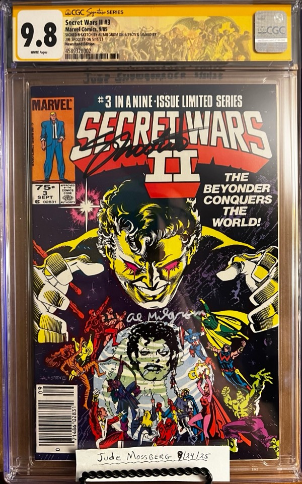 Secret Wars II #3 NEWSSTAND 9.8 CGC SS 2X Signed/Sketched by Al Milgrom & Signed by Jim Shooter KEY: